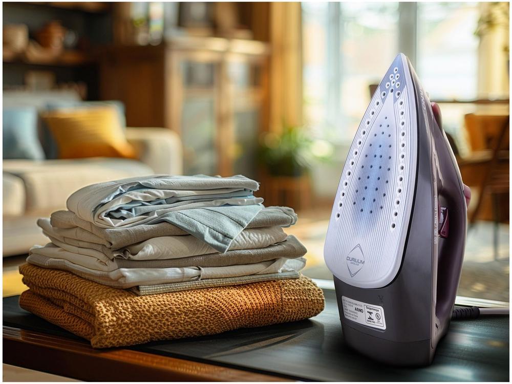 Características do Ferro: Vapor vertical, ponta de precisão, sistema corta-pingos